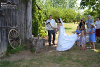 Tato červencová svatba byla laděna do levandulové barvy. Svatební stoly zdobily levandulové ubrousky a luční kvítí.Nevěsta měla vše sladěné, včetně svatební kytice, družiček i ženicha.