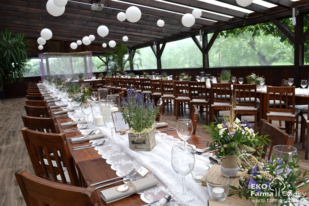 Krajky, levandule, dřevěné dekorace, lampiony, levandule, živé květy, relaxační koutek |