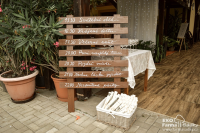 Když si své ano řekli Adam a Eva, bylo jasné, že ve výzdobě nesmí chybět jablka jako z biblického příběhu. Stoly byly dekorovány krajkou v kombinaci s břečťanem a zlatými vázičkami plnými květů. Jmenovky s elegantní pečetí se pak staly onou pomyslnou třešničkou na dortu. Pro děti byl připraven dětský koutek a pro všechny milovníky ostřejších drinků pak rumový koutek a otevřený aperol a gin bar.
